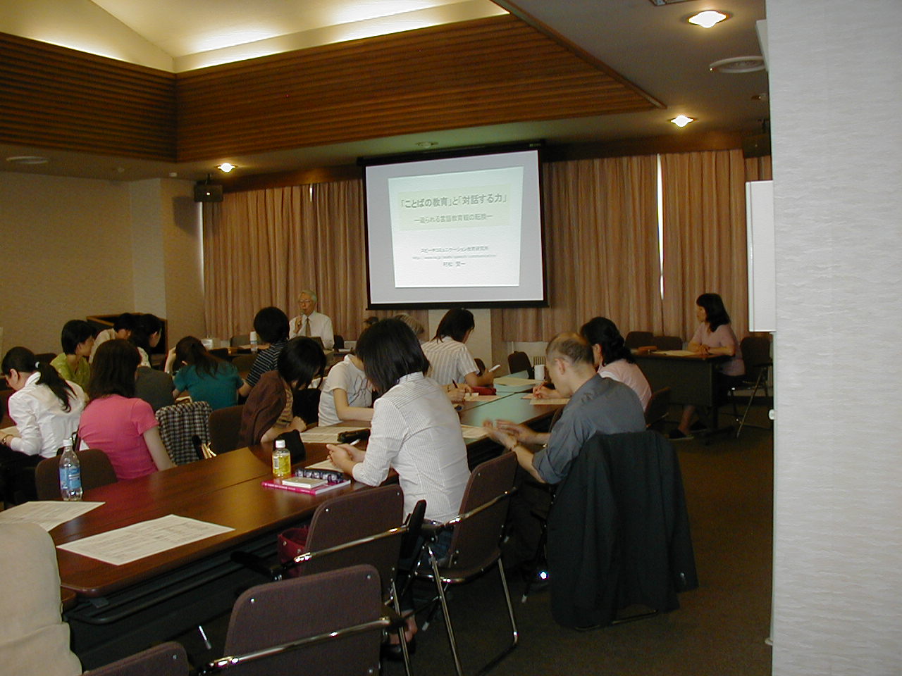 日本社会は、近年、終身雇用制の終焉や核家族化に象徴される共同体の解体、急速な社会変化に伴う世代間ギャップ、更には、外国人労働者の増加などにより、「言わなくても通じる」社会から「言わなくては通じない」社会へ急速に変貌しつつある。今ほど、文化や価値観、考え方の異なる他者とことばを介して相互理解を図る対話能力が求められる時代はなかったと言ってよい。国語教育や日本語教育、英語教育などことばの教育はその課題にどう応えたらよいのか。主に、国語教育のフィールドに、コミュニケーション能力としてのことばの力の育成を訴えている講演者が、教師の言語教育観に焦点をあて、「言わなくても通じる」社会から「言わなくては通じない」社会への転換を受け、その原理的転換を迫る。