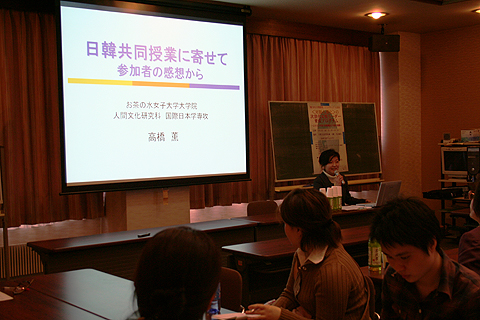 から報告があり、同じく韓国・淑明女子大学校大学院との日本文化・国際関係についての共同ゼミについては小風秀雅先生と国際日本学専攻の伴ゆりなさんから